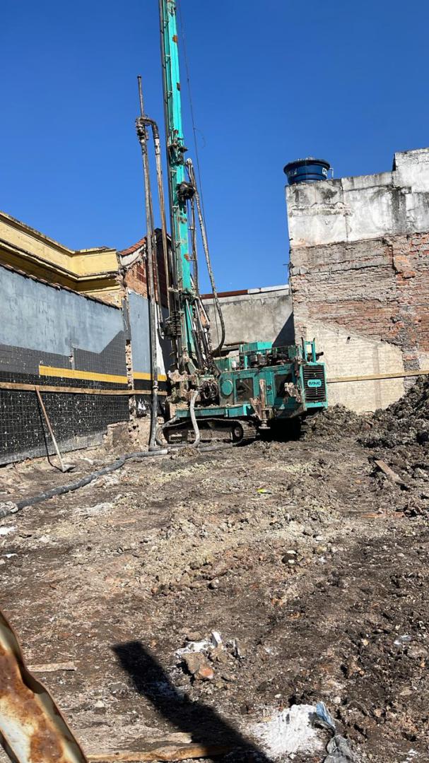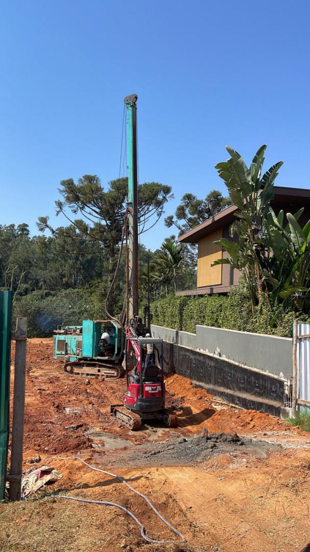 A estaca escavada é utilizada em terrenos secos (ou com nível de agua a baixo do nível de solo resistente) e consiste em remoção do solo através de trado rotativo.